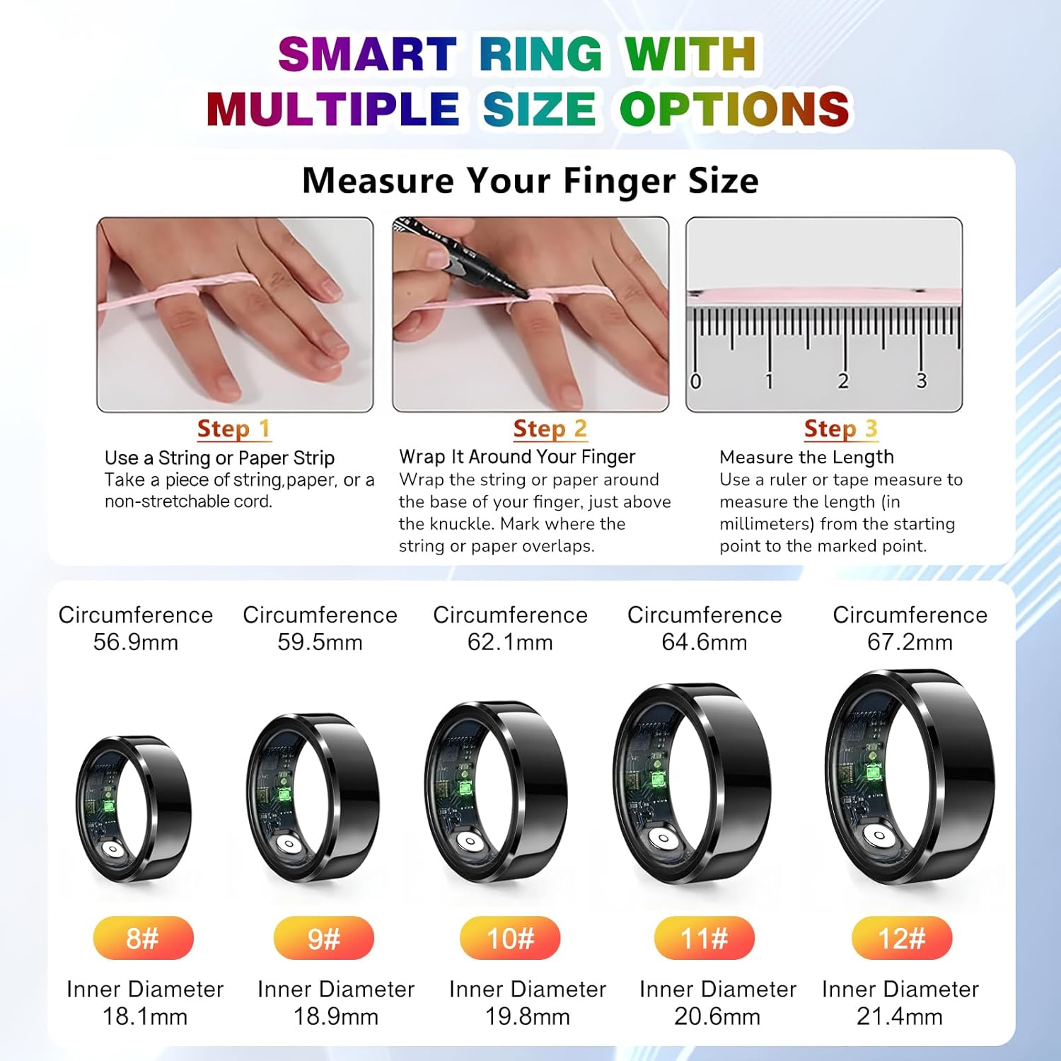 Smart Rings with Waterproof Design: Our blood pressure ring is built to withstand life’s challenges with 5ATM waterproof protection. Whether you’re washing your hands, sweating during intense workouts, or caught in the rain, it remains resilient and reliable. Perfect for all environments, this fitness tracker ensures uninterrupted health monitoring, combining ultimate durability with sleek style and performance.