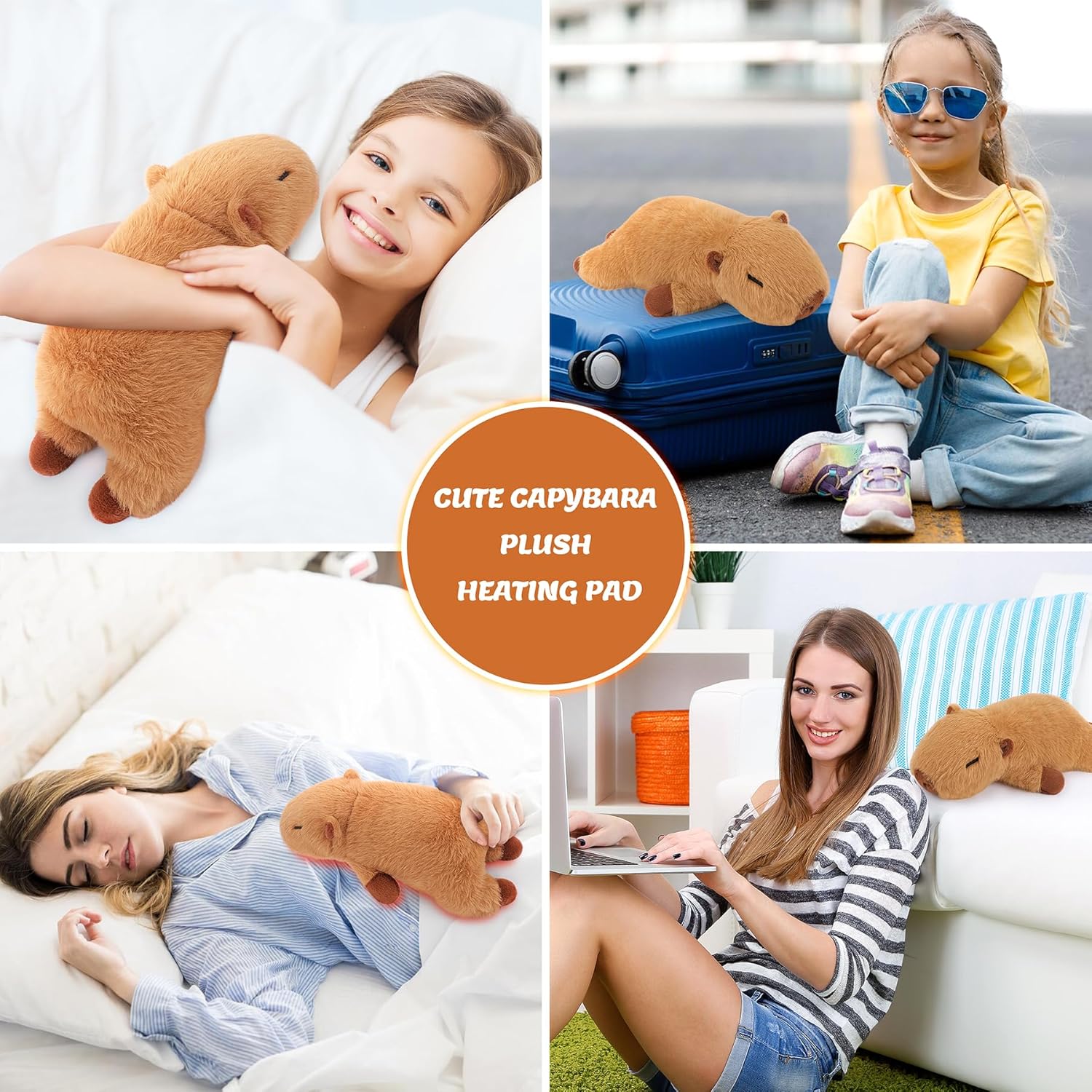 【Your Health Companion & Safe Use】A great helper for parents who ease their kids! With soothing natural unscent, this capybara plush toy is a great stress relief toy to provide a sense of security during difficult times. A soft warm and hugable plush helps promote positive emotions and relieve anxiety This heat pad for pain relief will release soothing moist heat which promotes blood circulation, effectively reducing the pains in your back, neck, sore joints and muscles. Its flat-designed gives the heating pad flexibility, so it can provide relief to all different parts of your body.