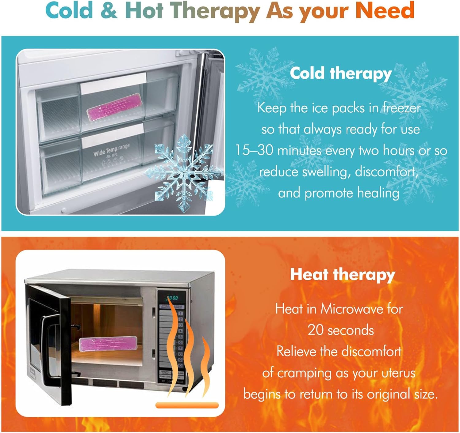 Safe Hot Cold therapy for soothing cool or heat relief – Keep the ice packs in freezer so that always ready for use to reduce swelling, discomfort, and promote healing. Heat in Microwave for 20 seconds to relieve the discomfort of cramping as your uterus begins to return to its original size. All from the comfort of your own home.
