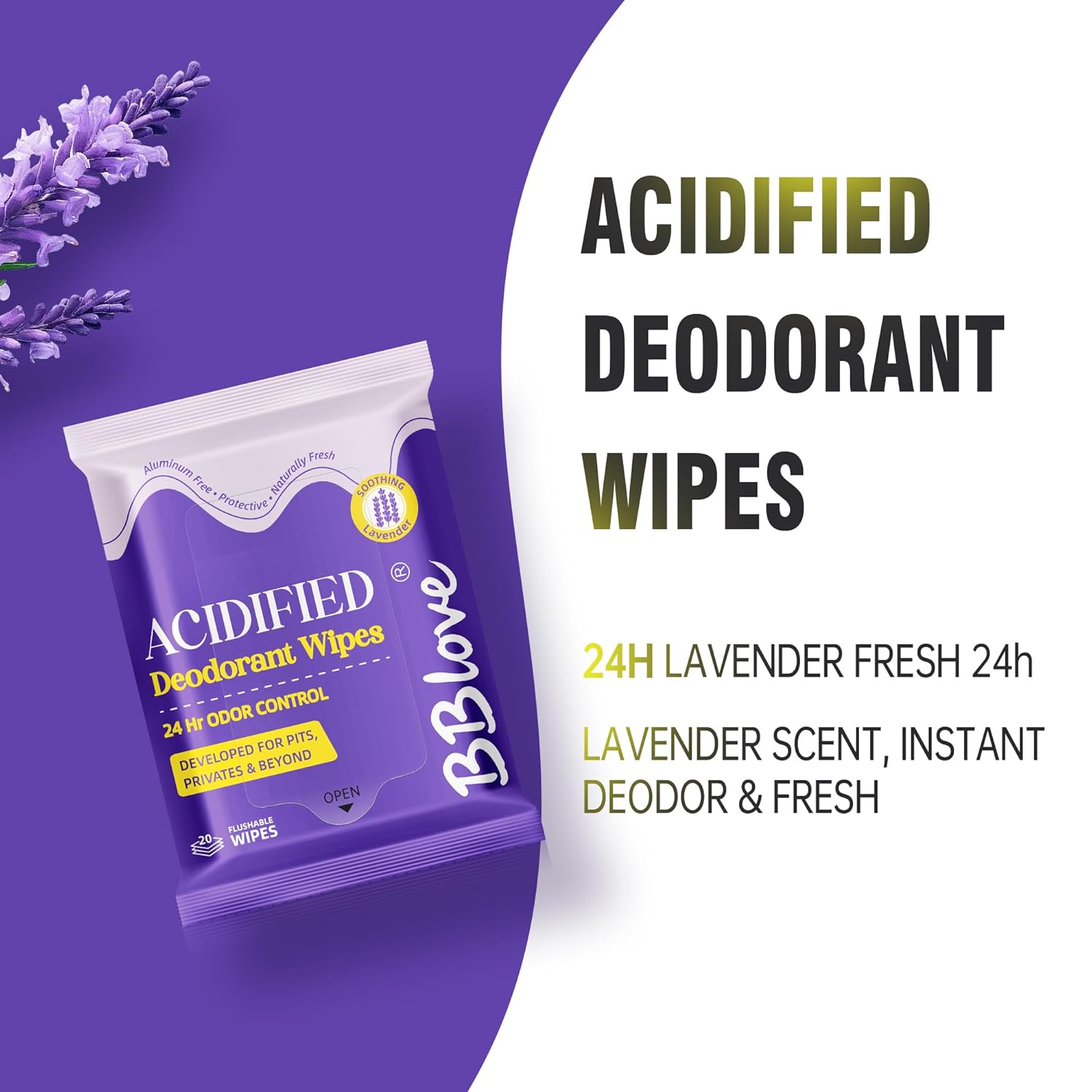 BBlove Lavender Acidified Deodorant Wipes