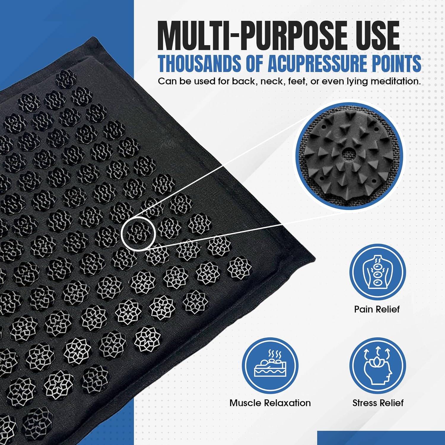 𝐅𝐮𝐥𝐥 𝐁𝐨𝐝𝐲 𝐂𝐨𝐦𝐟𝐨𝐫𝐭: Designed to provide a calming session through natural pressure point stimulation, this acupressure mat and pillow set helps your body relax with added comfort. Ideal for a full body relaxation routine.