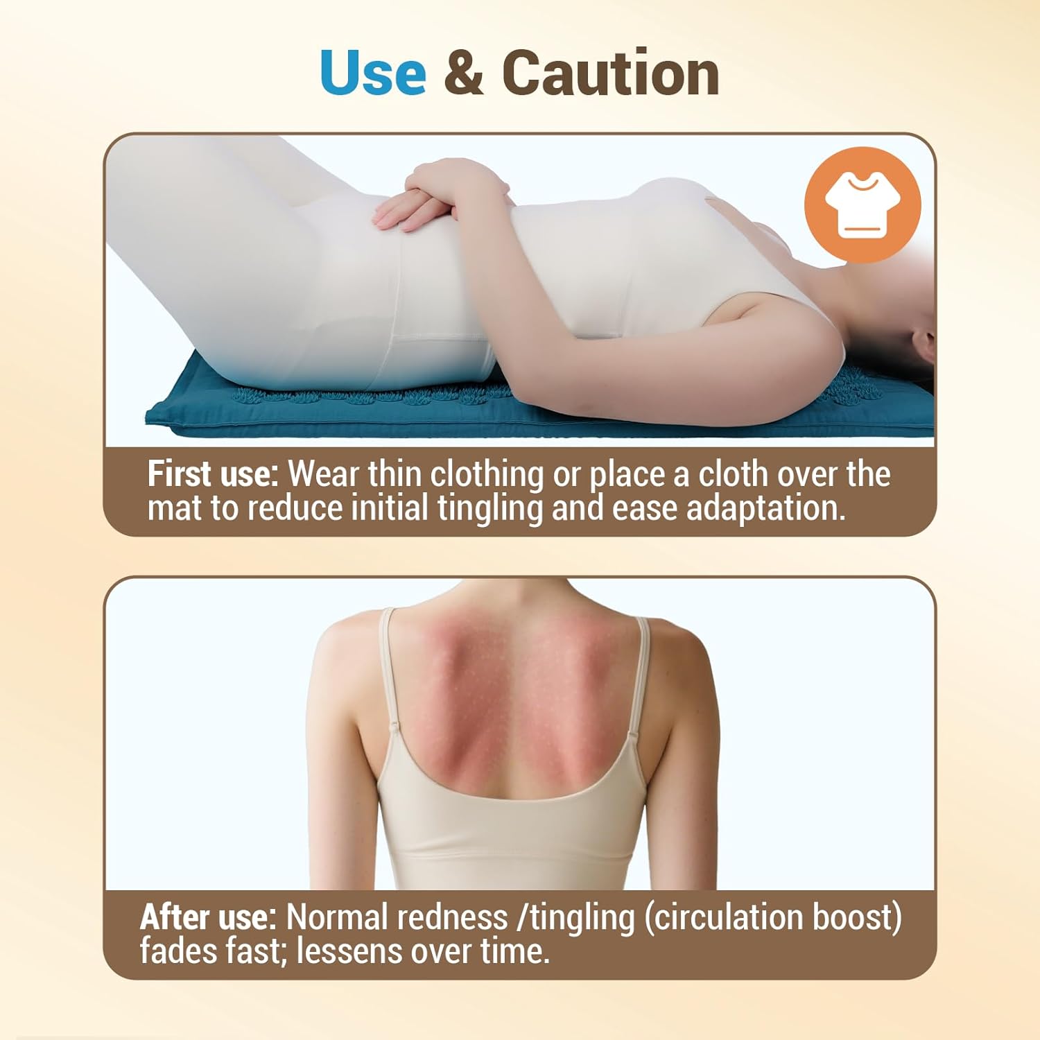 Safety Design: We believe warmth should always be safe. This acupressure massager features stable NTC/PTC heating wires, paired with flame-retardant cotton fabric and a 2-hour auto-off function, so you don’t have to worry about overheating. For first use, we recommend wearing light clothing or placing a thin cloth over the mat, and gradually increasing usage time to ensure gentle and comfortable enjoyment.