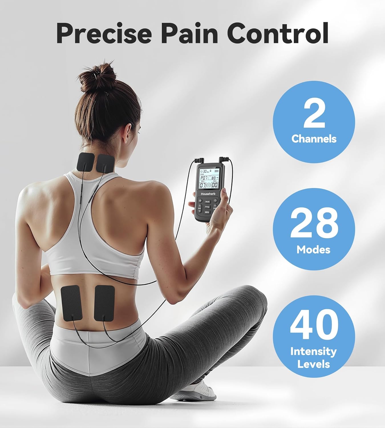 Personalized & Comfortable Therapy Experience – Features 40 adjustable intensity levels and 28 pre-set modes for gradual, non-jolting relief. Customize your session for up to 90 minutes, and choose between 2 or 4 electrode pads using dual channels for flexible coverage