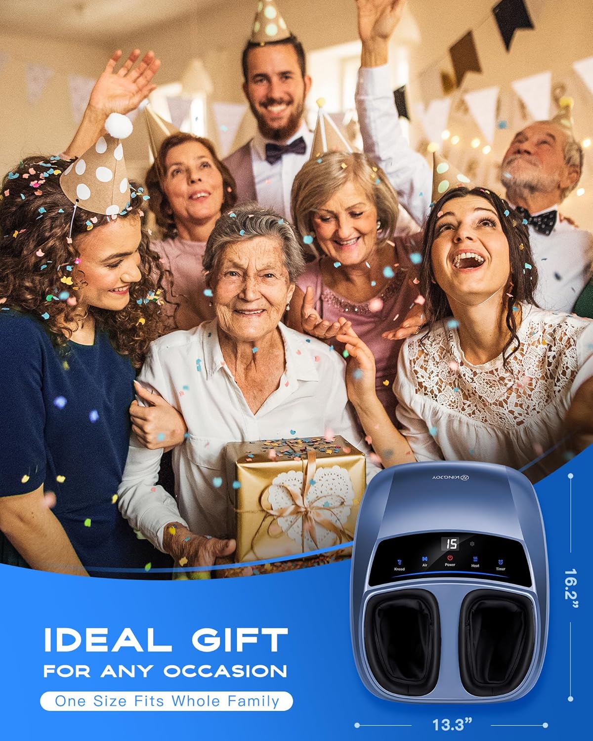 This foot massager is definitely in my top list of favourite items I’ve ever ordered! Both myself and my boyfriend feel the same way, and he’s used it more than me already!The device is pretty lightweight for what it is, which is great to be able to easily move it around the house or to a different room, or wherever. You just have to make sure you have an outlet somewhere nearby, and you’re all set.The remote is perfect as it keeps you from needing to bend over to adjust the settings, which is great if you experience any back issues while sitting. It’s perfectly legible and the print is big enough and clear to read right away. The response time from clicking a button to the reaction in the massager is basically instant, so seamless.For reference, I normally wear a US size 8 in women’s footwear and there’s plentyyy of room for my feet and ankles when they’re in side the massager, which you want ideally, since the air compression, if turned on, will tighten up the fit a bit more, especially on the highest setting. My boyfriend typically wears a US size 11-12 men’s footwear, and he still finds it perfectly comfortable for his feet, too. Of course the air compression is even more tight for him when on the highest setting, but he absolutely loves it.The fact that the feet inserts can be removed to be washed and aired out is a nice bonus, as any way to help keep a device like this clean and fresh is very helpful.The kneading option for the massage is incredible! I just love how it fees like a masseuse is putting pressure on my feet with their thumbs and rotating them…it’s fantastic! And it flows back and forth from one end to the other, and that moment it “rotates” is the best part, for us anyway! 🙌🏻As of November 2025, this is a very affordable foot massager device and would highly recommend as an idea for a Christmas gift for a loved one, which can also include yourself. 😉 We are obsessed with it!________________Product review for 📌Seller/Brand: KINGJOY • Foot Massager with Heat, Shiatsu Knead & Remote, Size 14, Gifts for Women Mom Men Dad Seniors