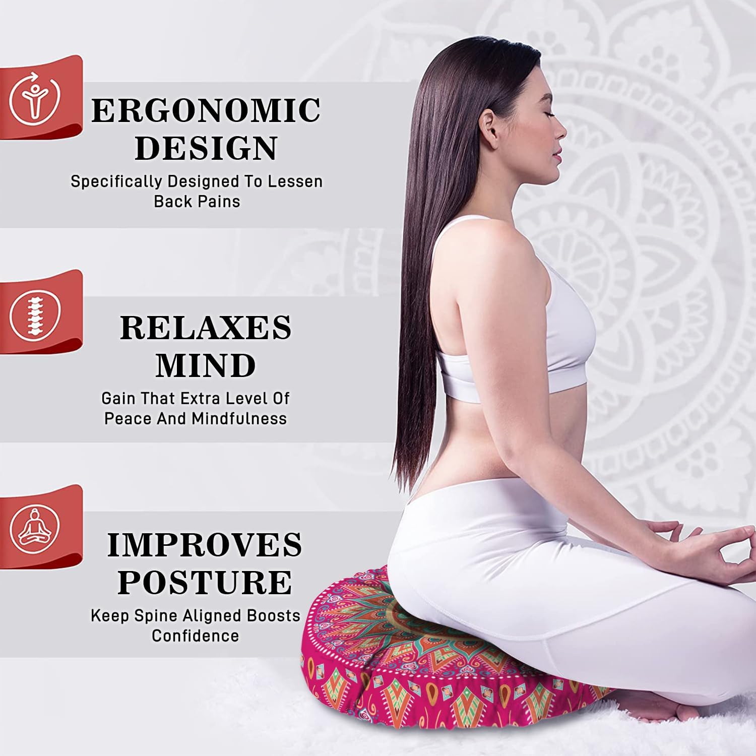 13 reviews for Mandala Meditation Cushion, Boho Meditation Mat, Meditation Pillows for Sitting on Floor, Cushions for Sitting in Home and Outdoor, Round Floor Pillows Cushion Seating for Yoga 22” X 22”