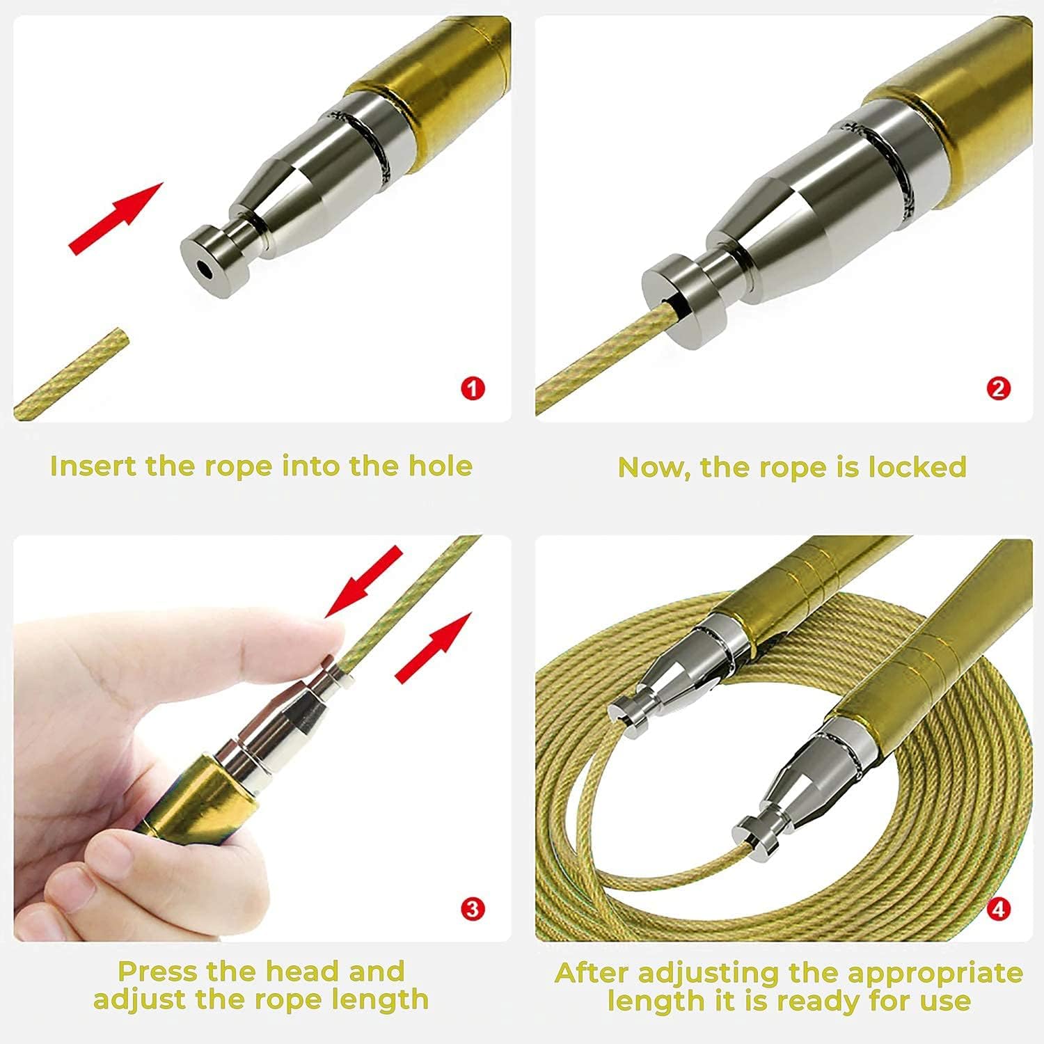 ⌚ EASILY ADJUSTABLE due to SELF-LOCKING SYSTEM – EFFORTLESSLY ADJUST WITH THE TOUCH OF YOUR THUMB – Not necessary to cut the rope – just plug it in, release, and ready to jump. Customize quickly the length to suit your needs, making it suitable for all ages and all skill levels.