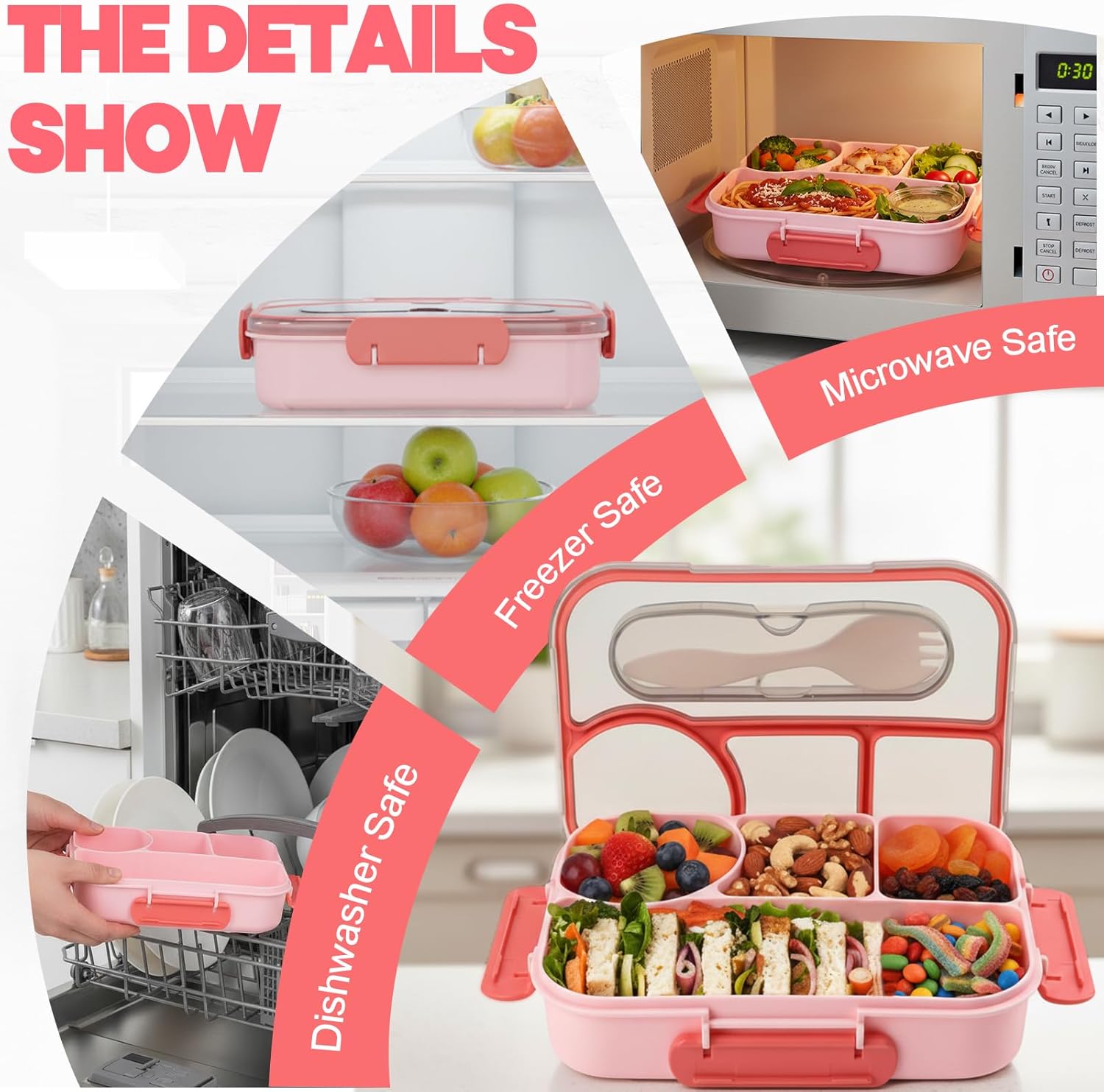 8 reviews for UZIPIN Bento Box for Adults,4 Compartments Lunch Box, Snack Containers Reusable Lunch Containers Drop-Proof, Dishwasher Safe & Made with BPA-Free Materials, Pink