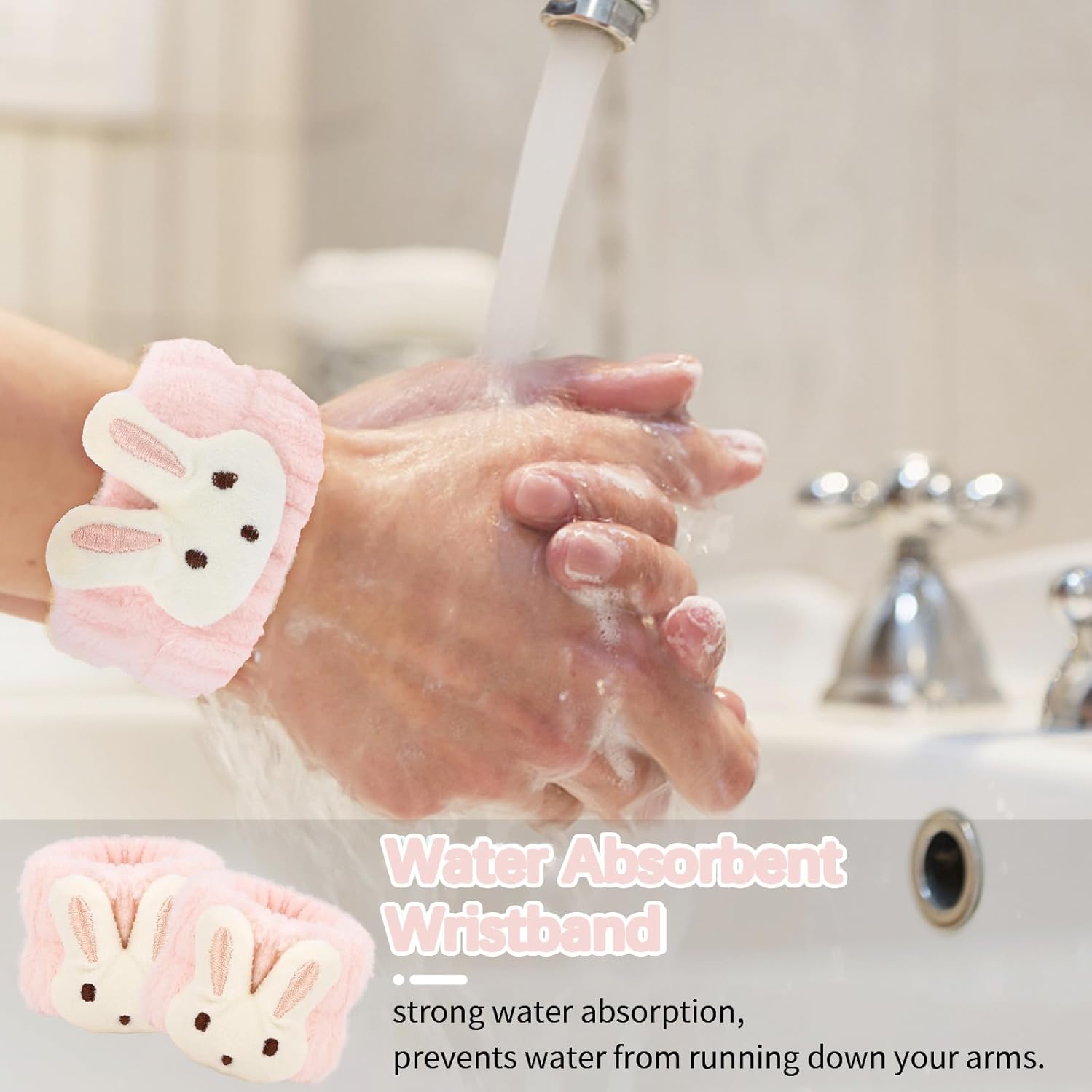 2 reviews for WHAVEL 3PCS Face Wash Headband and Wristband Set, Cute Rabbit Ears Headband for Washing Face Makeup Head band Wrist Towels Arm Bands (pink)