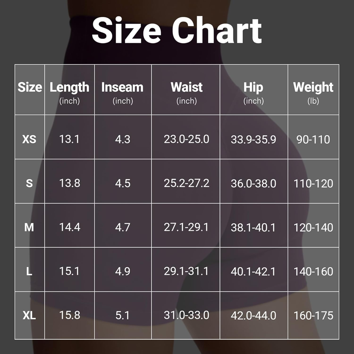5’6 145lb with wide hips, thick thighs, long torso*****Update after wearing/washing them couple of times:I ended up returning every other shorts except these two. Its not the influencer-crazy bo0ty enhancing/showy type compared to others —I can actually wear them out to the gym.Also both M & L fit comfortable and stretches with my movements, covers my tummy when I’m sitting down, thigh part doesn’t roll up (other ones did). These don’t cut off circulation in my thighs.——————-I got Dark Grey in Medium (in pic) and Navy in Large. Large is more comfy and gives more coverage. Medium is a bit more flattering & form-fitting but still comfortable + a slight cam3l to3.Pros: buttery soft material, stretchy & comfortable fit, cute booty scrunch, high-waistedCons: stitchings look cheap, show less camel to3 compared to other bike shorts but its still there bc of material.+ came with weird dark marks all over— went away after washing!
